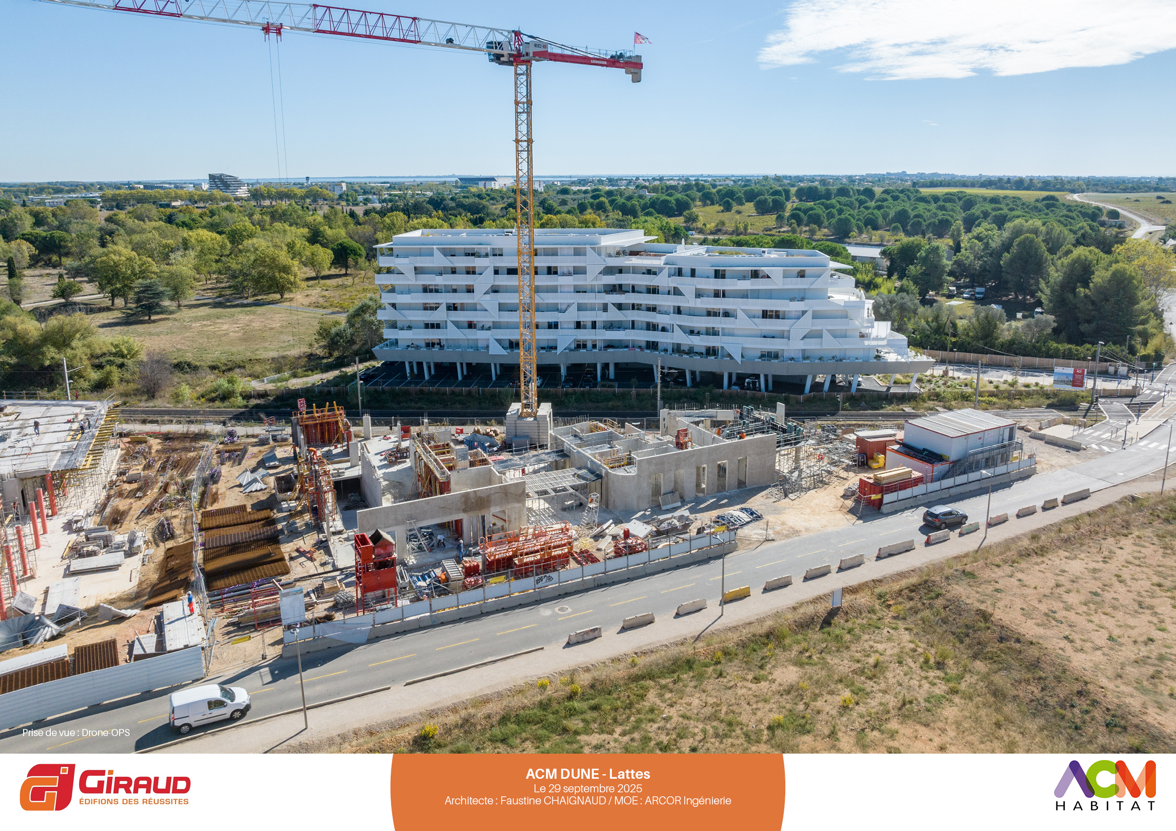 L’opération DUNE, située dans la ZAC Ode à la Mer (lot 25E3) à LATTES (34), consiste en la construction d’un immeuble de 29 logements sociaux, de 26 studios d'accueil et d’1 commerce.