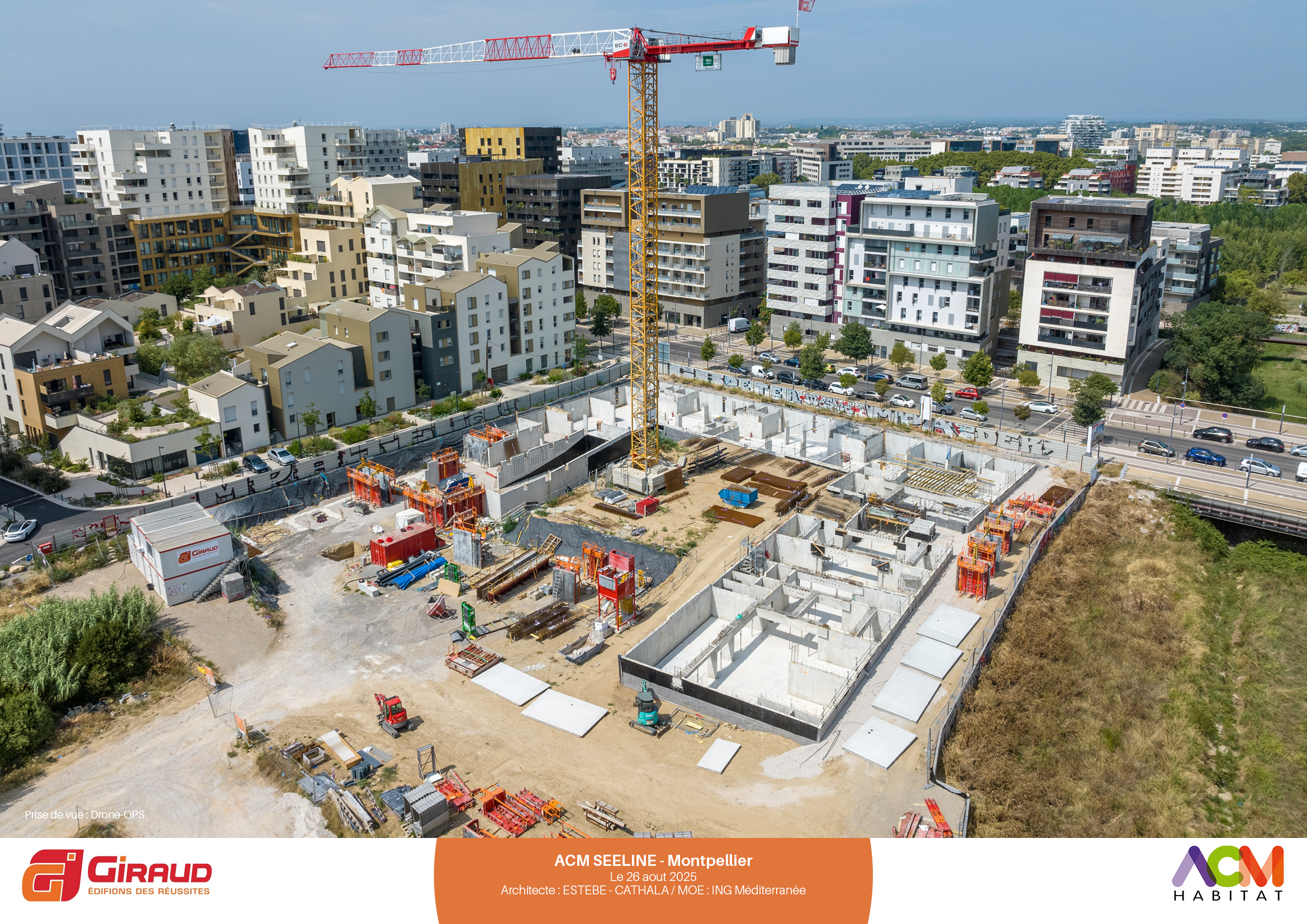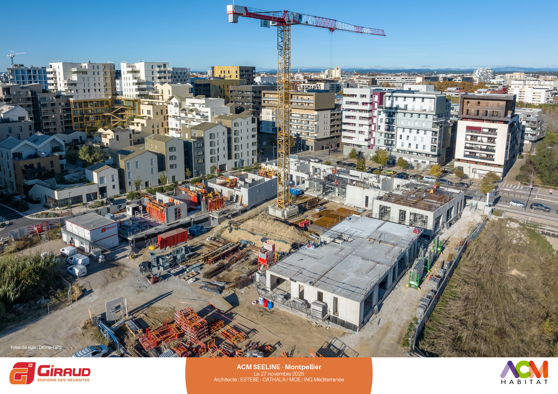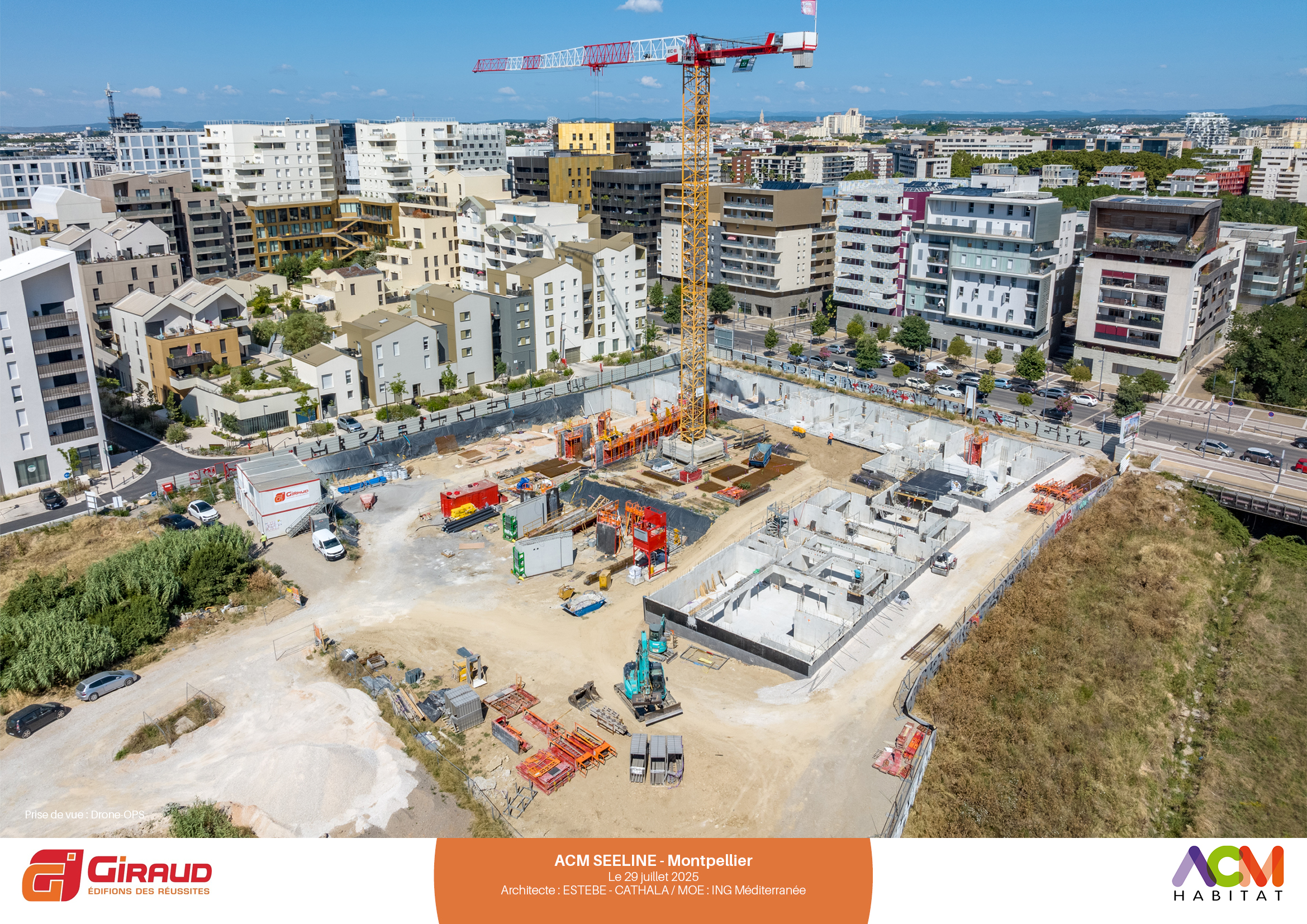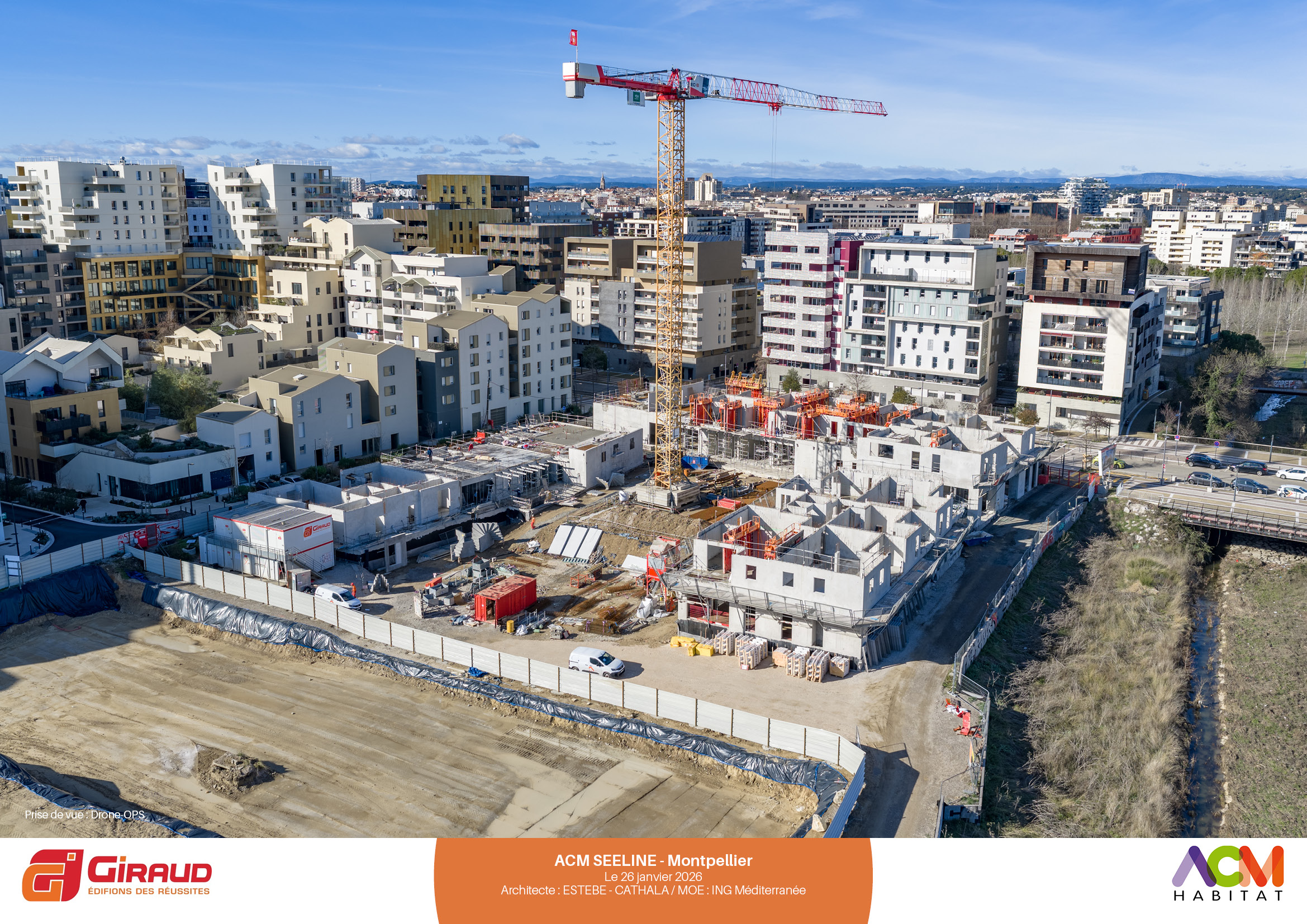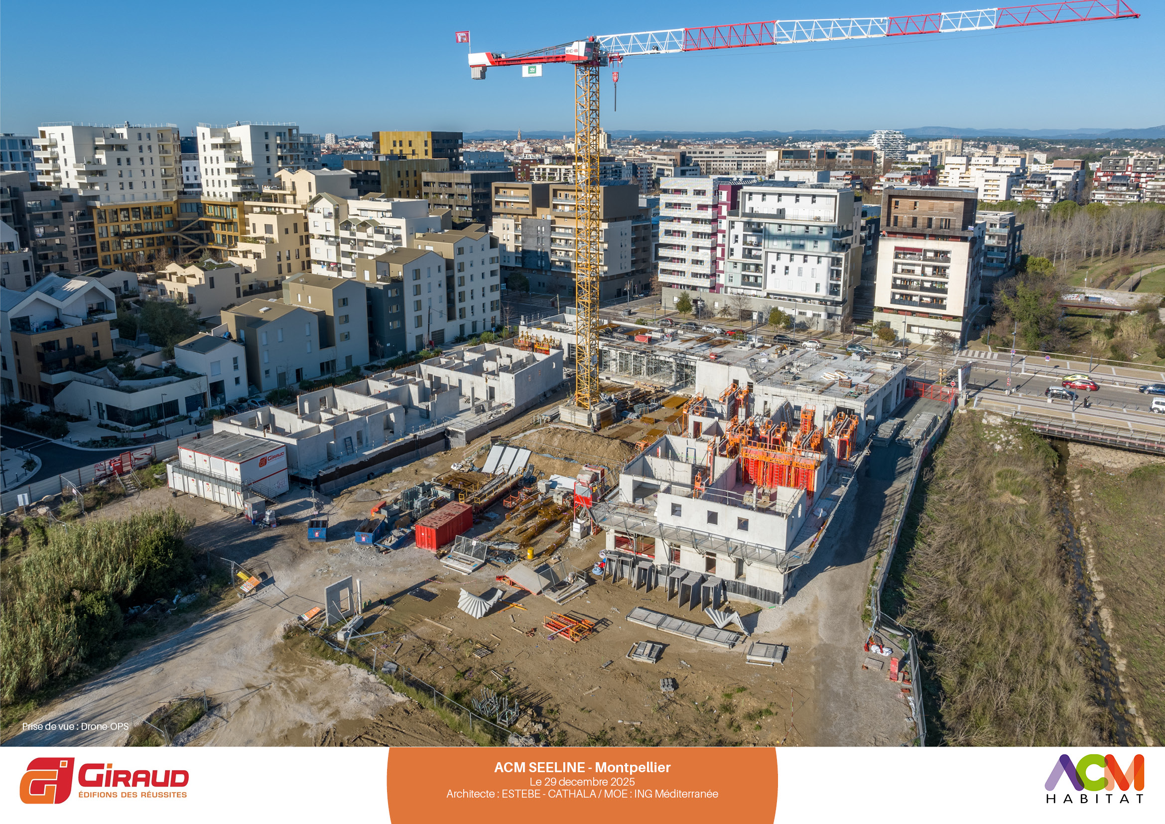 Au cœur du nouveau quartier République à Port Marianne (avenue Nina Simone), à proximité des berges de la Lironde, la résidence SEELINE se révèle dans ses déclinaisons de volumes et de matérialités (briques, béton, bois, enduit minéral).
